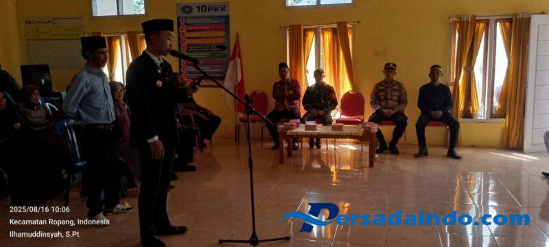 NTB – Sumbawa — Upacara pengukuhan Pasukan Pengibar Bendera Pusaka (Paskibraka) tingkat Kecamatan Ropang dalam rangka memperingati Hari Ulang Tahun Kemerdekaan Republik Indonesia ke-80 berlangsung khidmat di Aula Kantor Desa Ropang, Sabtu (16/08/2025).