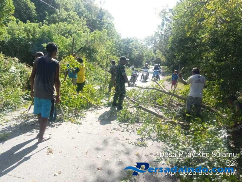 “Pembersihannya kami pangkas dahan-dahan pohon yang menonjol kebadan jalan sehingga menghalangi pandangan bagi pengemudi kendaraan roda dua dan empat”, kata Babinsa Sertu Yeskial Liu.
