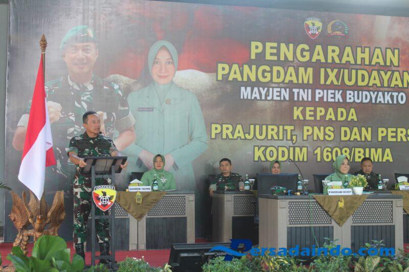 Dalam pengarahannya, Mayjen TNI Piek Budyakto menekankan pentingnya rasa syukur dalam berdinas, terlebih bagi prajurit yang bertugas di daerah asal sendiri. Ia juga mengingatkan agar seluruh prajurit, Persit, dan PNS senantiasa menjaga kesehatan pribadi dan keluarga, hidup hemat, serta cerdas dalam mengatur keuangan demi kesejahteraan keluarga. Pangdam juga mendorong untuk terus menanamkan semangat kebersamaan, kedisiplinan, dan semangat melayani masyarakat.