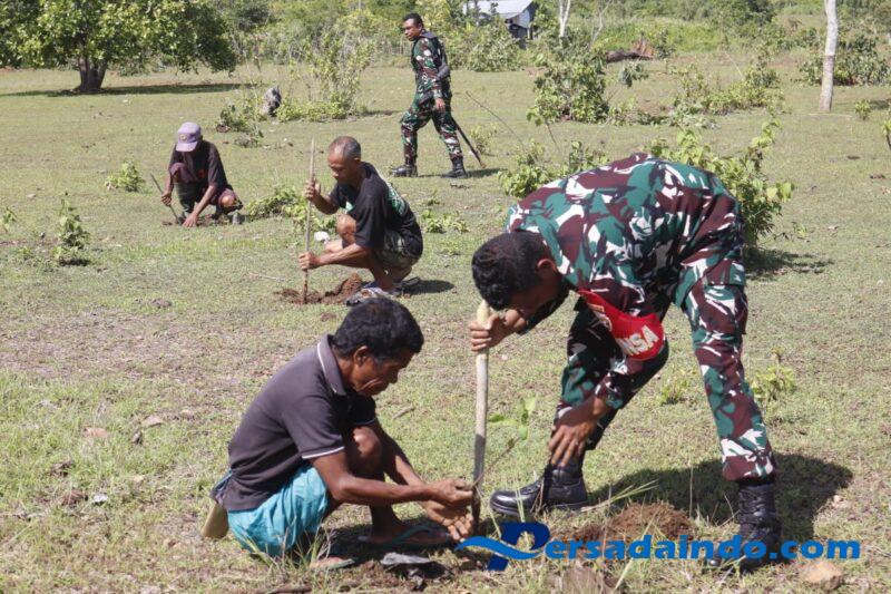 KODIM 1605/BELU, Guna membantu program pemerintah dalam mewujudkan kelestarian fungsi lingkungan hidup dan mengurangi dampak pencemaran di wilayah, Kodim 1605/Belu melaksanakan kegiatan pembinaan lingkungan hidup dengan menanam ratusan anakan pohon.