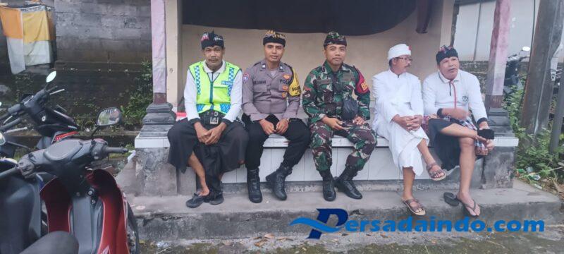 Klungkung, – Pengawalan dan pengamanan demi terwujudnya ketertiban dan kelancaran upacara keagamaan di wilayah binaan, Babinsa Tohpati Kopda Komang Puspantara bersama Bhabinkamtibmas dan pecalang melaksanakan pengamanan bersama, Selasa ( 04/11/25 ).