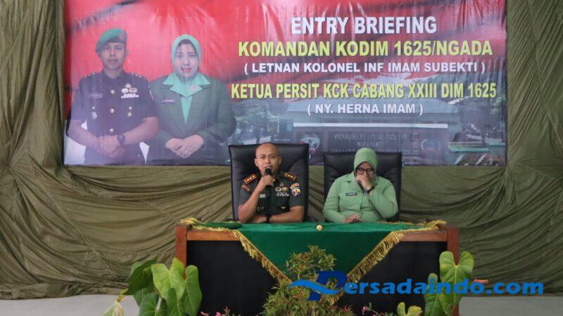 Bajawa, Ngada – Komandan Kodim 1625/Ngada, Letkol Inf. Imam Subekti, S.E., bersama Ketua Persit Kartika Chandra Kirana (KCK) Cabang XXIII Dim 1625/Ngada, menggelar kegiatan Entry Briefing kepada seluruh prajurit dan Persit Kodim 1625/Ngada. Kegiatan ini dilaksanakan di aula outdoor Makodim 1625/Ngada, Kecamatan Bajawa, Kabupaten Ngada.