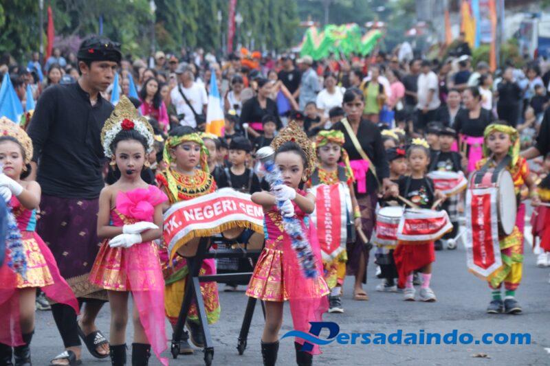 Adapun rangkaian kegiatan diwarnai dengan berbagai pertunjukkan antara lain tari kontemporer dari SLB Negeri 1 Klungkung berjudul “Lelakut”, Parade Marching Band dari TK Negeri Klungkung, Parade Barong Sai dan Barong Ket dari Yayasan Tulus Hati Vihara Dharma Ratna, Klungkung dan Parade Barong Bangkung bertema “Tri Semaya Mukti” dari Sanggar Wimala Kerti, Desa Gunaksa, Dawan, Klungkung serta Tari Barong Ket bertema Tepuk Asepan