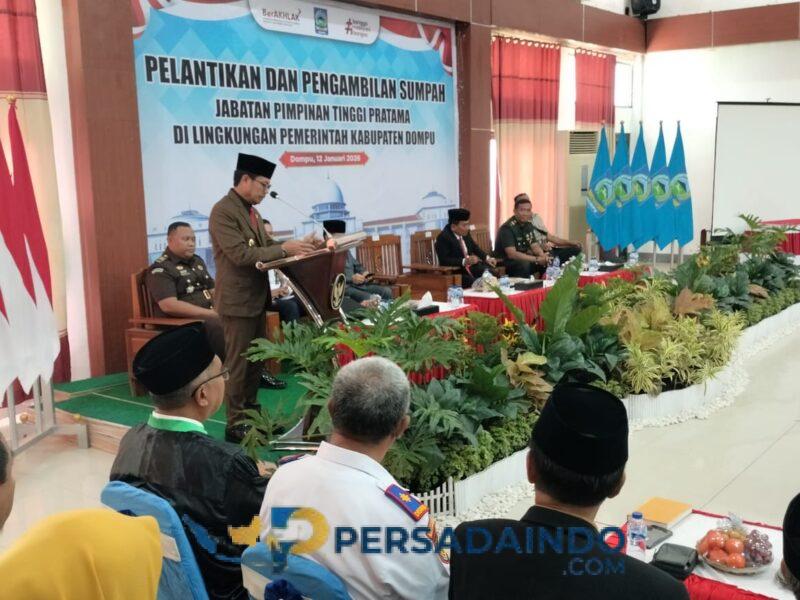 Dompu, NTB – Pemerintah Kabupaten Dompu menggelar Pelantikan dan Pengambilan Sumpah Jabatan Pimpinan Tinggi Pratama di lingkungan Pemkab Dompu pada Senin (12/1/2026) Kegiatan yang berlangsung di Aula Pendopo Dompu, Kelurahan Dorotangga, Kecamatan Dompu tersebut dipimpin langsung oleh Bupati Dompu Bambang Firdaus, SE, dan dihadiri sekitar 80 peserta.