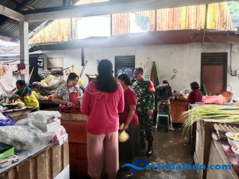 Bangli – Babinsa Desa Peninjoan Koramil 1626-03/Tembuku, Sertu I Made Suarnika, melaksanakan kegiatan Komunikasi Sosial bersama para pedagang dan pembeli di Pasar Peninjoan, Kecamatan Tembuku, Kabupaten Bangli, Rabu (10/09/2025).