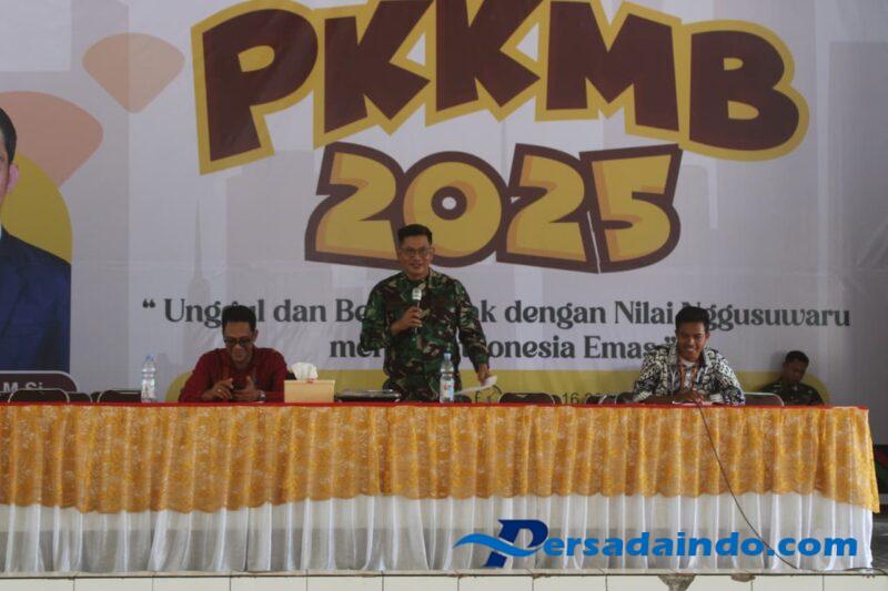 Mayor Inf Asep Okinawa Muas kemudian memberikan materi wawasan kebangsaan yang sangat menginspirasi mahasiswa baru. Dalam pemaparannya, Kasdim menyampaikan pentingnya menjaga jati diri bangsa serta kesadaran membela negara sebagai bagian dari tanggung jawab generasi muda. “Sebagai generasi penerus, kalian wajib memahami sejarah dan nilai-nilai kebangsaan agar mampu menjaga keutuhan NKRI,” ujarnya dengan semangat.