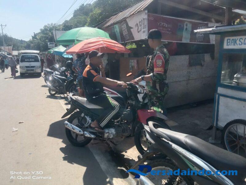 Memantau Keamanan Wilayah – Babinsa memastikan situasi Kamtibmas di sekitar pasar tetap aman dan kondusif.