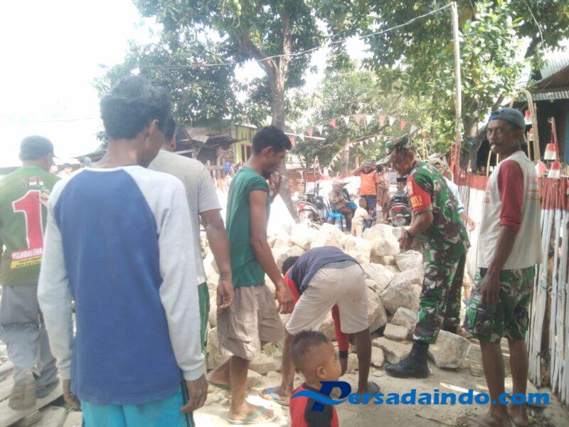 Sape,Bima._ Pada hari Senin, tanggal 18 Agustus 2025, Serka Khairuddin, Babinsa Desa Lanta Kecamatan Lambu, anggota Koramil 1608-03/Sape, melaksanakan kegiatan gotong royong pembangunan pondasi rumah milik Bapak Fatah Hula. Kegiatan tersebut berlangsung di RT 10 RW 05 Dusun Salama, Desa Lanta, Kecamatan Lambu, Kabupaten Bima.