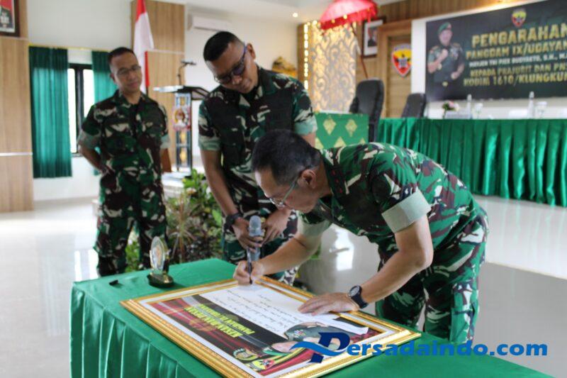 Setelah menerima paparan satuan dari Dandim 1610/Klungkung Letkol Kav Sidik Pramono, S.Sos.,M.M.,M. Han, Pangdam IX/Udayana berkesempatan untuk bertatap muka secara langsung serta memberikan pengarahan kepada prajurit dan PNS Kodim 1610/Klungkung.