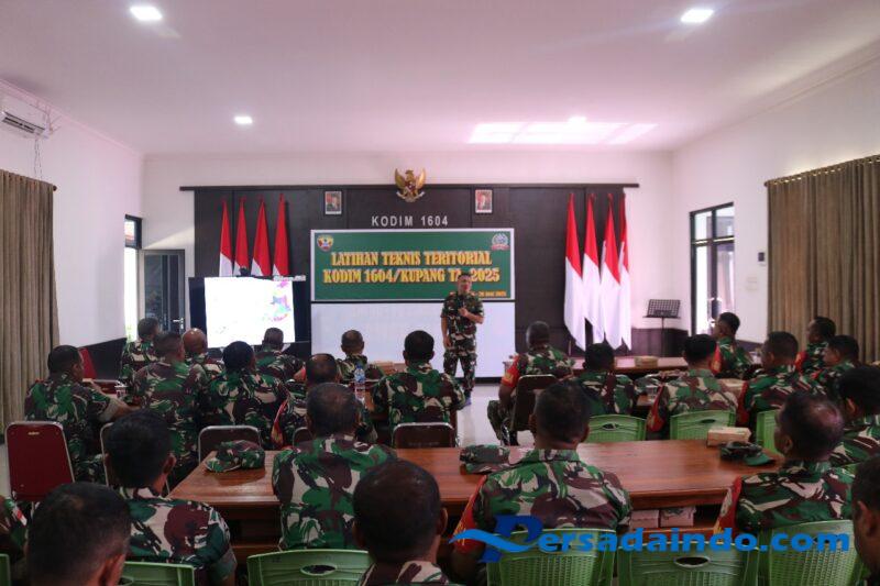 NTT-KUPANG, — Kodim 1604/Kupang menggelar Latihan Teknis Teritorial Tahun 2025 sebagai bagian dari upaya peningkatan profesionalisme aparat kewilayahan dalam menjalankan tugas pembinaan teritorial. Latihan ini dijadwalkan berlangsung selama tiga hari, dengan sesi teori dan praktik lapangan. Selasa (15/07/2025).