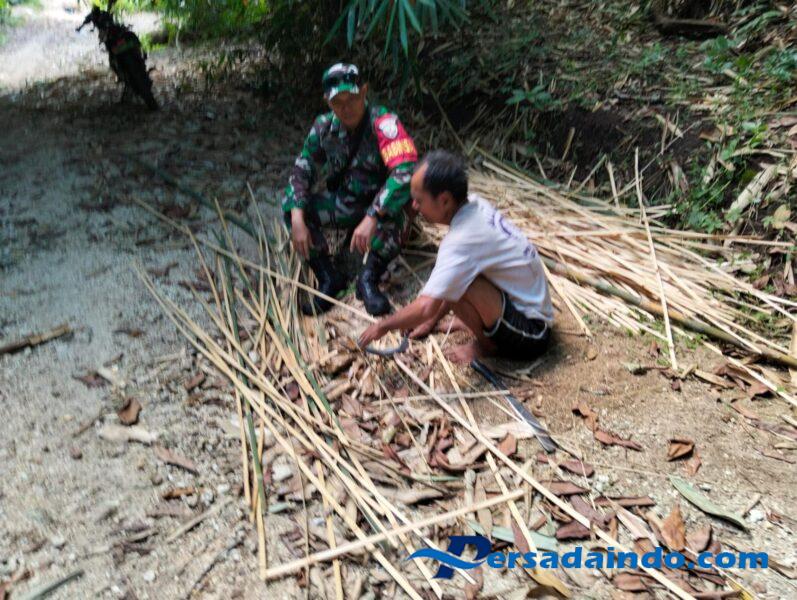Ditemani semilir angin dibawah pohon bambu Bintara Pembina Desa ( Babinsa ) Bunga Mekar Koramil 1610-04/Nusa Penida Sertu Ketut Suantara terlihat begitu asyik dan akrab berbincang-bincang bersama Wayan Super salah satu pengerajin keranjang bambu.