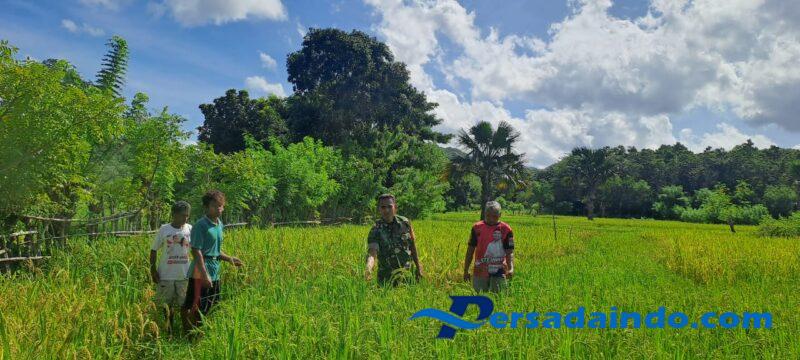Sertu Junus Ratu menyambangi para petani yang sedang di area persawahan untuk memberikan motivasi dan semangat dalam mengelola lahan pertanian mereka. Ia juga berdiskusi dengan para petani mengenai teknik dan langkah-langkah yang dapat meningkatkan hasil panen.