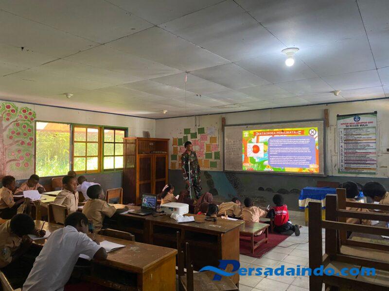 • Menanam Cinta NKRI Sejak Dini, Satgas Yonif 743/PSY Mengajar di SD Mulia