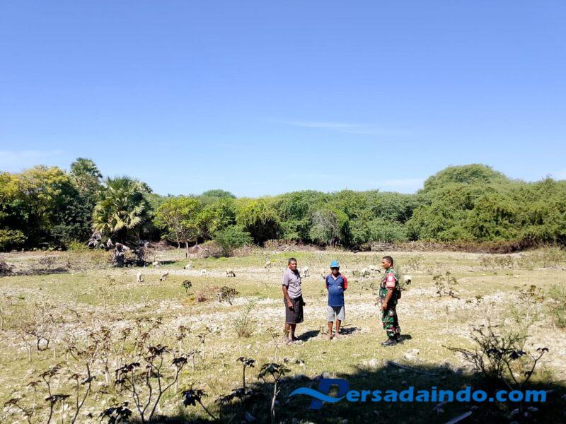 Rote Ndao – Babinsa Koramil 02/Pantai Baru Kodim 1627/Rote Ndao Sertu Benyamin Cardoso melaksanakan silaturahmi dan koordinasi dengan para petani di desa binaan.Desa Sabtu(19/7/20)