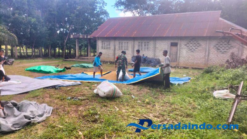 • Menjaga Kualitas Hasil Panen, Babinsa Koramil 01/Lewa Bantu Petani Jemur Padi