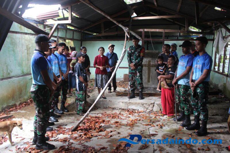 Eban – Satgas Pamtas RI–RDTL Sektor Barat Yonarhanud 2 Kostrad kembali hadir di tengah masyarakat melalui kegiatan karya bakti membantu proses perobohan bangunan Gereja GMIT Jemaat PNIEL Eban di Tubungka’i RT. 28 yang telah berdiri sejak tahun 1964 di Desa Eban, Kec. Miomaffo Barat, Kab. TTU. Sabtu (15/11)