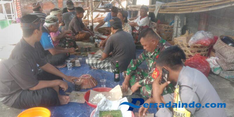 Disela kegiatannya, Serka Yulianta menjelaskan bahwa tradisi megibung hari ini digelar masuyarakat dalam rangka upacara keagamaan piodalan di Pura Dalem Desa Adat Umasalakan.