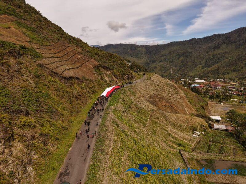 Kegiatan dimulai dengan pembagian Bendera Merah Putih kepada masyarakat, kemudian pengobatan masal dilanjutkan arak-arakan bendera raksasa sejauh 1,5 kilometer menuju puncak Bukit Zaitun. Sepanjang perjalanan, seluruh peserta dengan khidmat menyanyikan lagu-lagu kebangsaan menciptakan suasana penuh haru dan kebanggaan nasional. Momentum ini menjadi simbol kuat kecintaan masyarakat Puncak Jaya terhadap Negara Kesatuan Republik Indonesia.