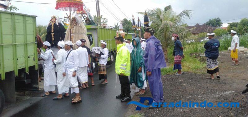 • Meski Ditemani Hujan, Babinsa Satra Tetap Semangat Beri Pengawalan Ngiring Ida Ratu Gede Dan Sanghyang Tri Durga Tedun Ke Desa Adat Tanggahan Peken