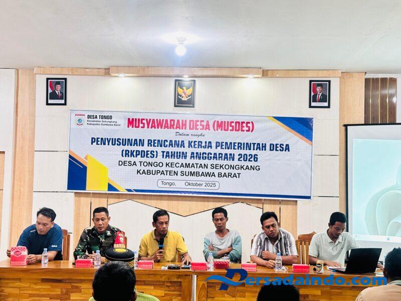 Sumbawa Barat, NTB — Dalam upaya menyusun arah pembangunan desa yang partisipatif dan transparan, Pemerintah Desa Tongo Kecamatan Sekongkang menggelar Musyawarah Desa (Musdes) Penyusunan Rencana Kerja Pemerintah Desa (RKPDES) Tahun Anggaran 2026, Selasa malam (04/11/2025) bertempat di lantai dua Kantor Desa Tongo.