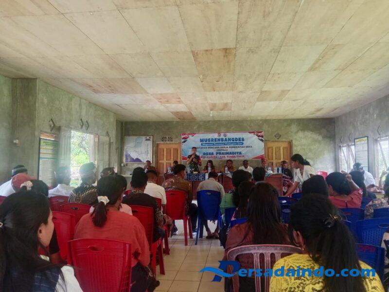 NTT-Sumba Timur.Babinsa Koramil 06/Karera, Kodim 1601/Sumba Timur, Pratu Hezron Wora, menghadiri kegiatan Musyawarah Perencanaan Pembangunan Desa (Musrembangdes) yang digelar di Aula Kantor Desa, Kecamatan Karera, Kabupaten Sumba Timur, pada Selasa (25/11/2025).