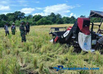 Babinsa Koramil 06/Karera Kodim 1601 /Sumba Timur, Pratu Aldi Kore, melakukan pendampingan panen padi menggunakan alat modern berupa traktor pem...