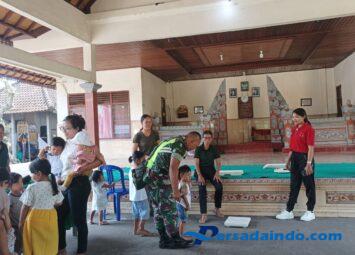 Bangli – Babinsa Koramil 1626-02/Susut Serka Ketut Rediada melaksanakan sambang dan pemantauan kegiatan posyandu dari Puskesmas setempat k...
