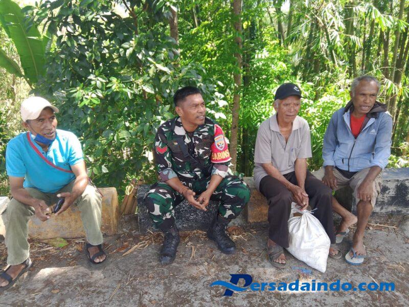 Ende, – Koptu Sahlan Umar, Babinsa Koramil 1602-04/Maurole, melaksanakan kegiatan Pengamanan Wilayah (Pamwil) dan Komunikasi Sosial (Komsos) bersama masyarakat Desa Aewora, Kecamatan Maurole, Kabupaten Ende, Jumat pagi pukul 10.00 Wita.
