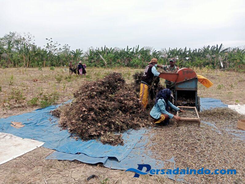 KODIM 1605/BELU, Guna mempercepat masa panen, Babinsa Desa Litamali Koramil 1605-05/Kobalima Sertu Maximus Nahak membantu petani merontokkan hasil panen kacang hijau dengan menggunakan mesin perontok di Dusun Wesuma B, Desa Litamali, Kecamatan Kobalima, Kabupaten Malaka, Sabtu (11/10/2025).