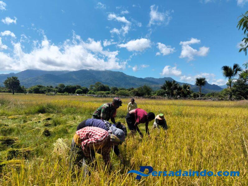 Pendampingan panen padi dilakukan guna peningkatan ketahanan pangan dan untuk kesejahteraan petani, yang melibatkan anggota Satgaster Kodim 1604/Kupang, agar tercipta hubungan emosional yang semakin erat.