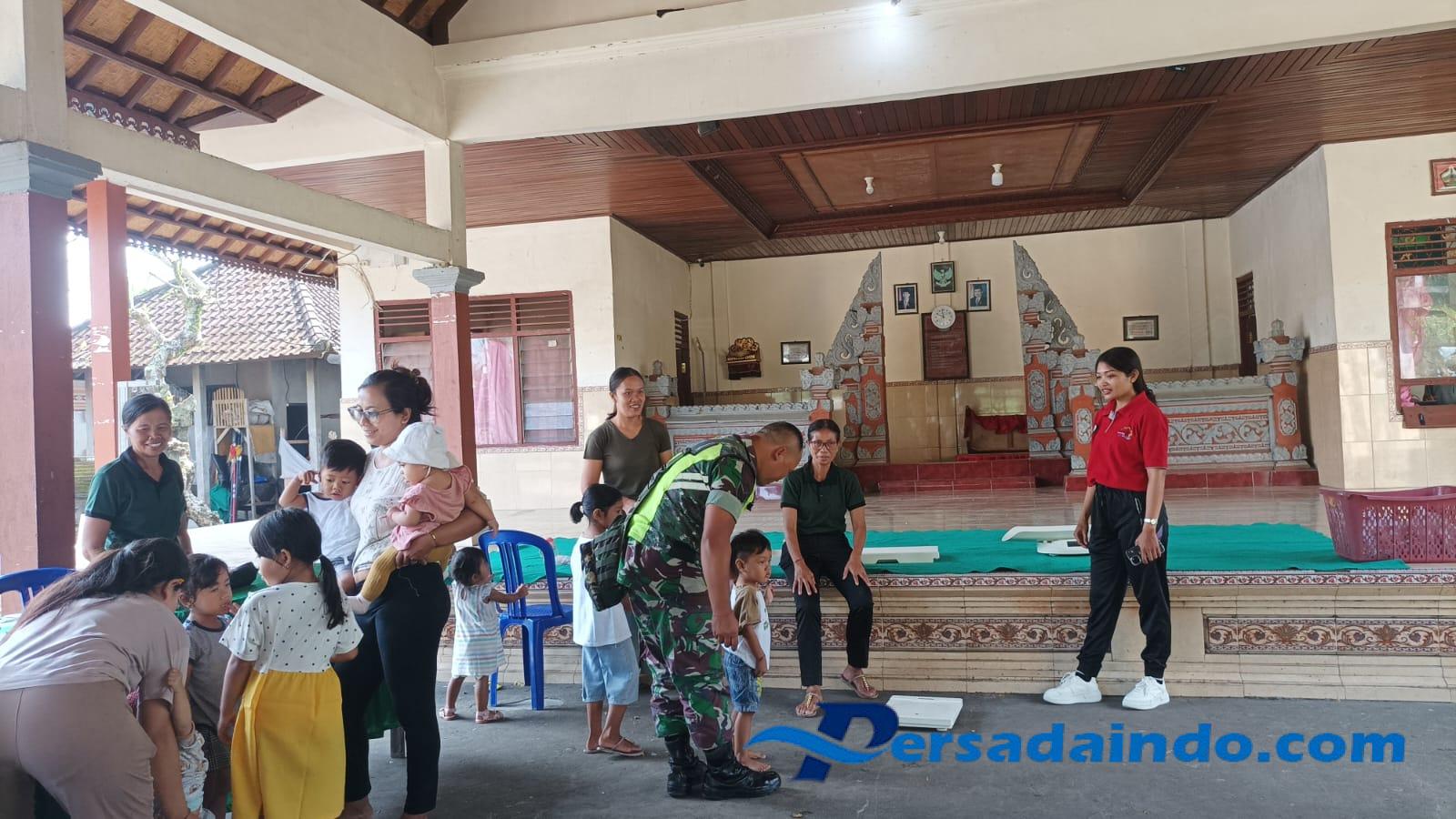 Bangli – Babinsa Koramil 1626-02/Susut Serka Ketut Rediada melaksanakan sambang dan pemantauan kegiatan posyandu dari Puskesmas setempat kepada ibu-ibu dan balita. Ia turut memberikan penyuluhan tentang pola hidup sehat dan menkomsumsi makanan yang bergizi. peran posyandu ditengah masyarakat sangatlah besar, meski identik dengan bayi dan balita, kegiatan posyandu dan manfaatnya tidak hanya sebatas itu,program posyandu sejatinya juga diperuntukan bagi ibu hamil, ibu menyusui dan pasangan usia subur.