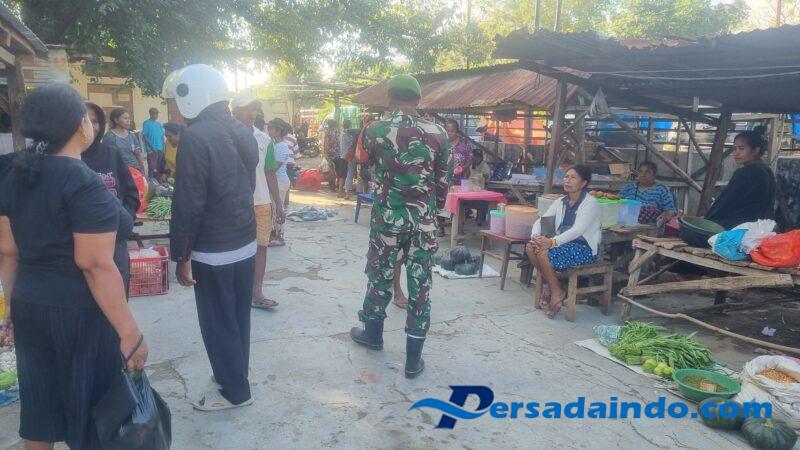 Rote Ndao – Dalam rangka membina hubungan yang harmonis dengan masyarakat binaannya, Babinsa Koramil 1627-01/Ba’a, Kopda Hendra Gaspersz, melaksanakan kegiatan komunikasi sosial (komsos) sekaligus pemantauan di Pasar Mingguan Ufalen, Desa Siomeda, Kecamatan Rote Tengah, pada hari Rabu, 16 Juli 2025.