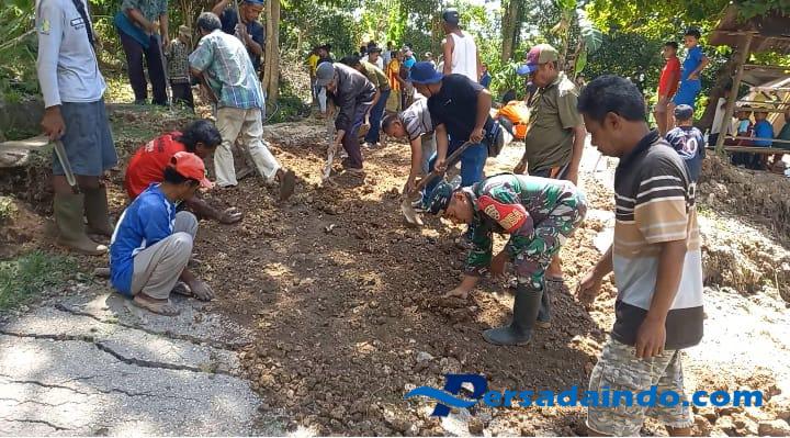So’e _ Pasca Bencana Alam Di Desa Kuatae Babinsa koramil 1621-01/Kota So’e Serda Agus Takesan Bersama Masyarakat Melaksanakan Gotong Royong Perbaiki Jalan Yang rusak Untuk Akses kendaraan Roda Dua Sekaligus Melaksanakan Pertemuan Dengan Wakil Ketua Komisi I DPRD Kab .TTS Untuk Menyampaikan Aspirasi Masyarakat Terkait Bencana alam Yang Terjadi Beberapa Waktu Yang Lalu, Bertempat Di Desa Kuatae Kec.Kota So’e Kab.TTS