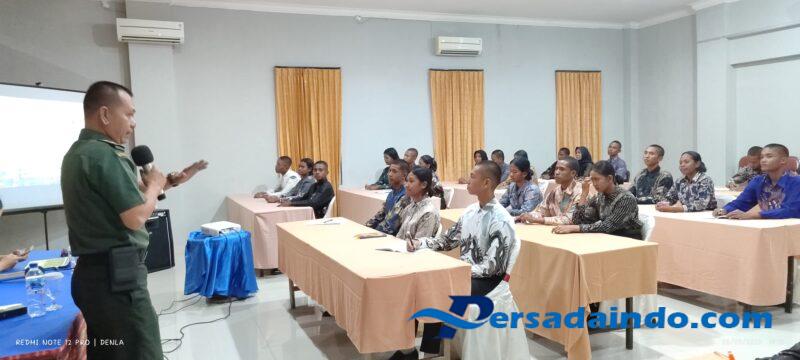 NTT-KUPANG, – Dalam rangka menanamkan rasa cinta tanah air, Pasi Intelijen Kodim 1604/Kupang, Mayor Inf Hendry Dunnat, S.I.P., memberikan materi wawasan kebangsaan pada kegiatan Pemusatan Pendidikan dan Pelatihan Pasukan Pengibar Bendera Pusaka (Paskibraka) Tingkat Kota Kupang Tahun Anggaran 2025. Kegiatan ini berlangsung di Hotel Sasando, Jl. R.A. Kartini, Kelurahan Kelapa Lima, Kecamatan Kelapa Lima, Kota Kupang, yang diselenggarakan oleh Panitia Pemusatan Pendidikan & Pelatihan Paskibraka Kota Kupang melalui Badan Kesatuan Bangsa dan Politik (Kesbangpol) Kota Kupang. Jumat (08/08/2025).
