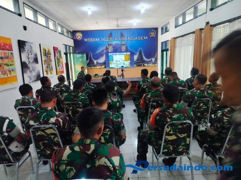 Karangasem – Pasipersdim Kapten Inf I Wayan Jaya Antara bersama 33 personel Militer Kodim 1623/Karangasem mengikuti kegiatan Video Conference (Vicon) Sosialisasi KPR TWP AD oleh Tim TWP AD Pusat, di Aula Kodim 1623/Karangasem, Jl. Sudirman, Lingkungan Janggapati, Kelurahan Subagan, Kec/Kab.Karangasem, pada Jumat (21/11/25).