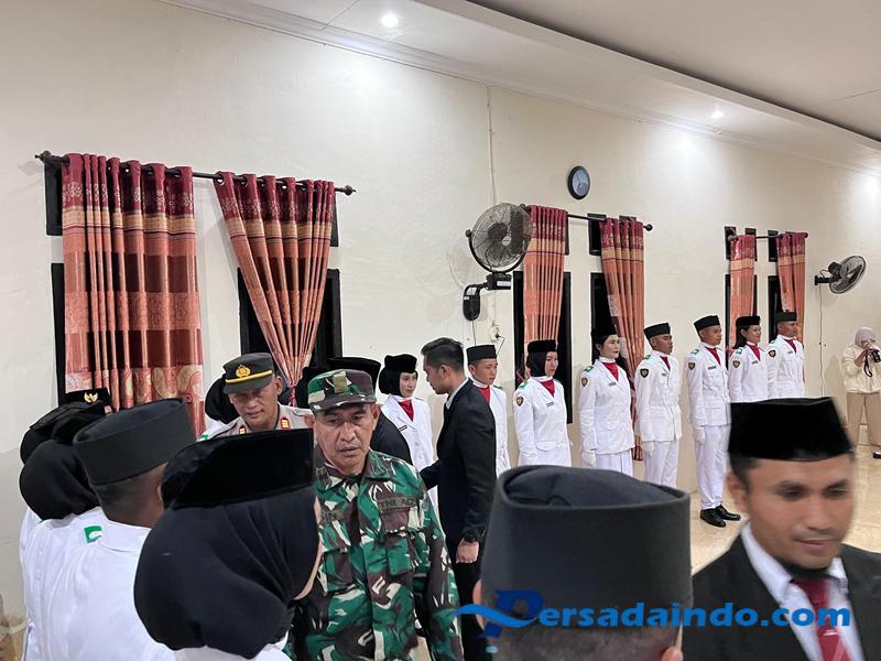 Sumbawa – NTB – Danramil 1607-07/Lunyuk Kapten Inf Radin menghadiri kegiatan Upacara Pengukuhan Anggota Pasukan Pengibar Bendera (Paskibra) tingkat Kecamatan Lunyuk dalam rangka memperingati Hari Ulang Tahun (HUT) ke-80 Kemerdekaan Republik Indonesia Tahun 2025, kamis (14/08/2025).