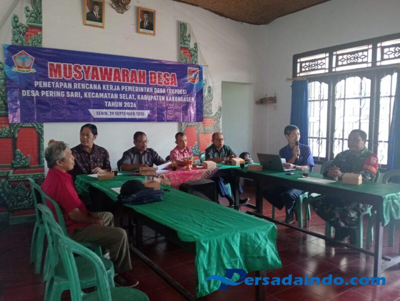 KARANGASEM – Babinsa Desa Peringsari Koramil 1623-06/Selat Sertu I Nengah Sukanta menghadiri kegiatan rapat Musyawarah Desa (Musdes) Penetapan Rencana Kerja Pemerintah Desa Peringsari (RKPDes) tahun anggaran 2026, di Aula kantor Desa Peringsari Kec.Selat Kab.Karangasem, pada Selasa (07/10/25).