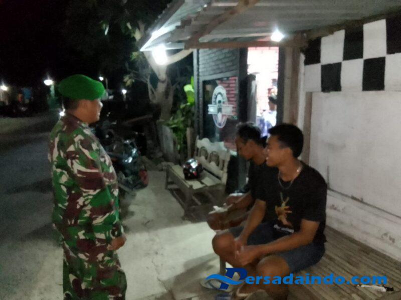 Sape, Bima _ Tujuh anggota Koramil 1608-03/Sape yang dipimpin Serka Jamaludin melaksanakan kegiatan Patroli Siskamling untuk memantau situasi wilayah serta mengantisipasi perkembangan situasi di Kecamatan Sape dan Kecamatan Lambu. Patroli menyasar pemukiman warga serta tempat tongkrongan anak muda guna mencegah hal-hal negatif yang dapat mengganggu keamanan.