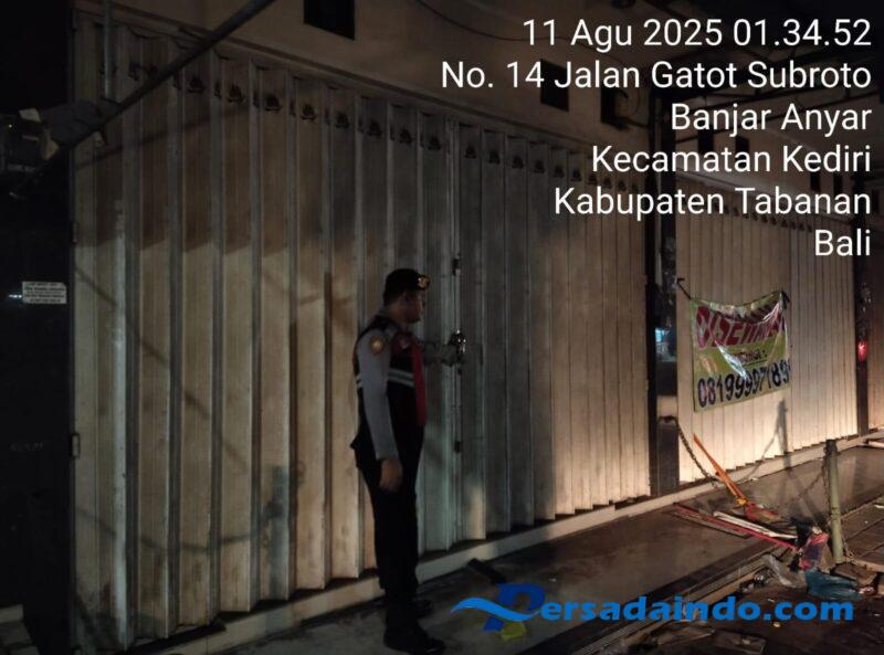 Polda Bali – Polres Tabanan – Humas Tabanan. Polres Tabanan melalui Sat Samapta kembali menggelar Patroli Jalan Kaki Subuh Keliling Perintis Presisi pada Senin (11/8/2025) dini hari. Kegiatan yang dimulai pukul 01.00 hingga 02.30 WITA ini dipimpin langsung oleh PS. Kasubnit 2 Dalmas Bripka I Wayan Rangga Dita Diputra, dengan dukungan personel BRIGPOL Gus Putu Janarta Kori dan BRIPDA Pande Putu Gede Bashu Dewa. Patroli menyasar titik-titik strategis di wilayah hukum Polres Tabanan, di antaranya Perumahan Sanggulan Indah, Pertokoan Jalan Gatot Subroto, dan SD Triamarta Sanggulan.