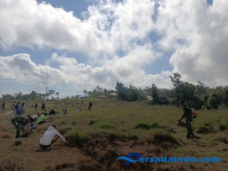 Satgas Yonif 741/GN Pos Fohuk bersama masyarakat laksanakan pembersihan di lapangan Desa Persiapan Majorato, Kecamatan Lamaknen Selatan, Kabupaten Belu. Rabu (16/07/2025)