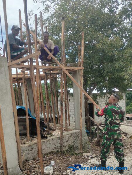 Rote Ndao,Wujud nyata kemanunggalan TNI dengan rakyat kembali ditunjukkan oleh Babinsa Koramil 03/Batutua Kodim 1627/Rote Ndao, Serda Demsi Taek, melalui kegiatan kerja bakti membantu pembangunan rumah milik keluarga Bapak Agustinus Fua di Desa Mbali Lendeki Kecamatan Ndao Nuse, Kabupaten Rote Ndao.