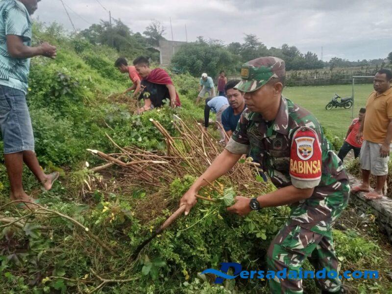 Dompu, NTB – Wujud nyata kepedulian terhadap lingkungan dan mempererat hubungan dengan warga binaan, Babinsa Desa Malaju Koramil 1614-04/Kilo, Sertu Mastudinnur, bersama Sekretaris Desa, Ketua BPD, aparat desa, dan masyarakat setempat melaksanakan kegiatan gotong royong pembersihan lapangan di Dusun Ncoha, Minggu (15/6/2025).