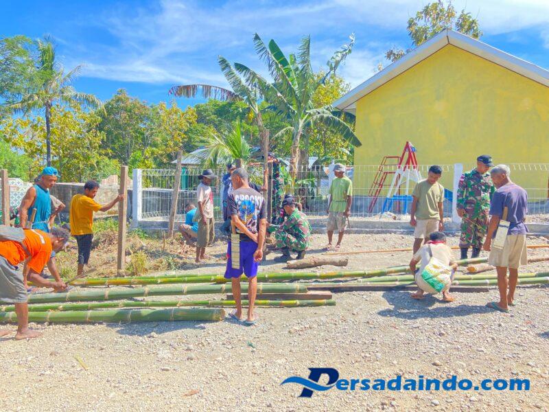 Belu – Pos Mahen bersama masyarakat binaan membangun tempat sampah organik sebagai wadah pembuatan pupuk kompos di Desa Lakanmau, Kecamatan Lasiolat, Kabupaten Belu. Jumat (27/06/2025).