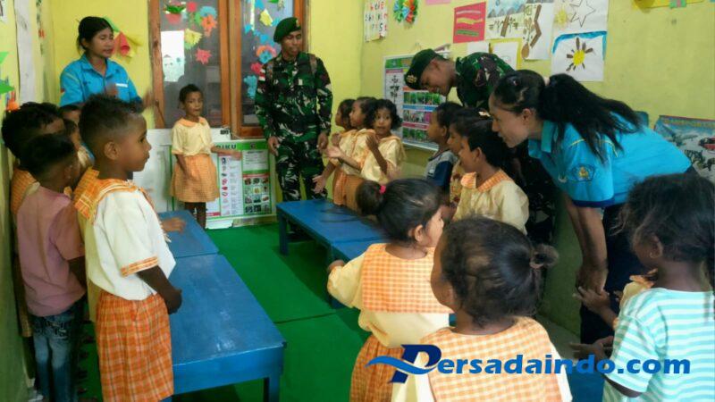 PAUD Sely selama ini tidak memiliki fasilitas meja belajar yang memadai, sehingga anak-anak belajar dengan duduk di lantai. Melihat kondisi tersebut, personel Pos Motamasin berinisiatif untuk membuat dan menyerahkan sejumlah meja belajar agar kegiatan belajar mengajar dapat berlangsung lebih nyaman dan efektif.