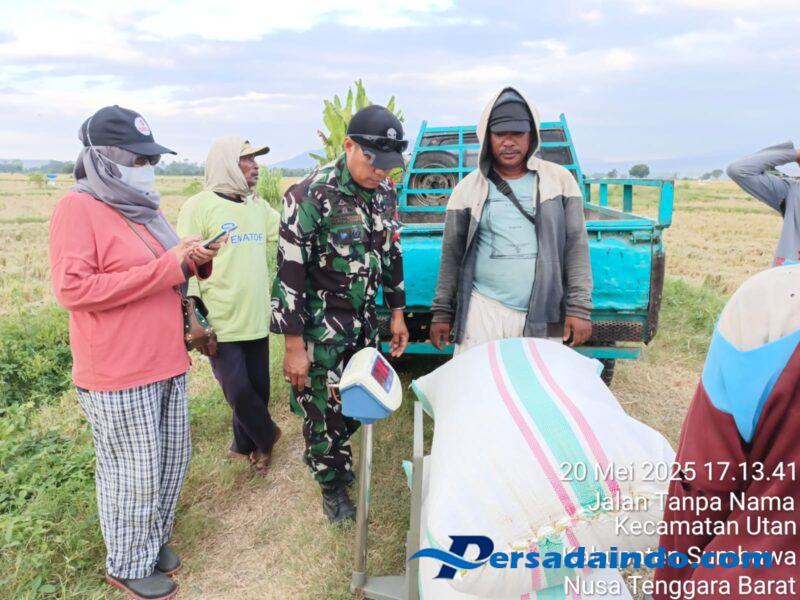 NTB — Sumbawa, Dalam upaya mendukung ketahanan pangan dan membantu petani dalam proses pascapanen, Babinsa Desa Orong Bawa, Serda Supriadi yang merupakan anggota Koramil 1607-09/Utan, melaksanakan kegiatan pendampingan penyerapan gabah pada hari Selasa, 20 Mei 2025.