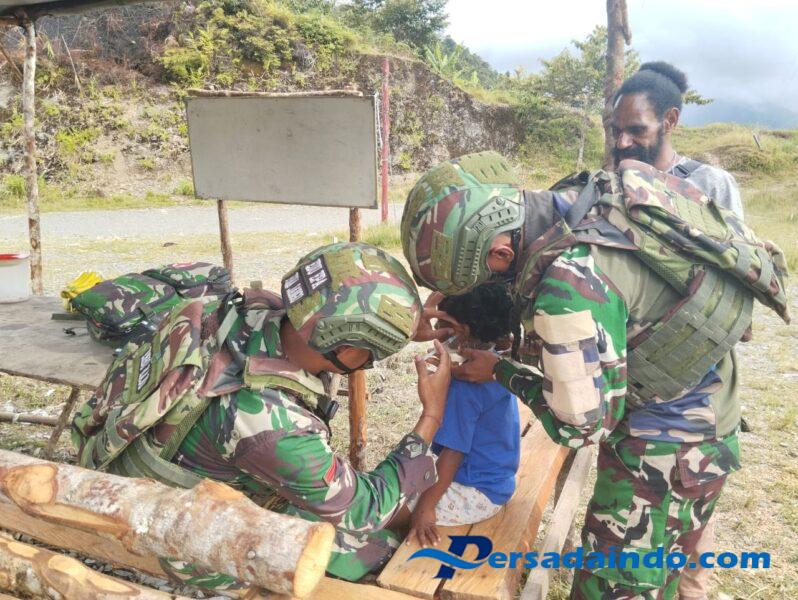 Puncak Jaya, Papua – Satgas Yonif 743/PSY Pos Pintu Angin kembali menunjukkan kepeduliannya kepada masyarakat dengan memberikan pelayanan kesehatan di Kampung Kulirik, Distrik Mulia, Kabupaten Puncak Jaya, Senin (15/09/25).