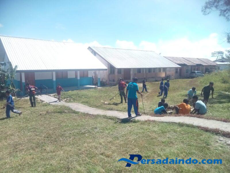 Kegiatan karya bakti ini pun mendapat sambutan positif dari Kepala Sekolah dan juga para guru yang merasa senang karena Satgas TNI selalu membantu pihak sekolah dalam menjaga kebersihan lingkungan. “Kami sangat bersyukur atas kegiatan ini, karena selain bermanfaat untuk sekolah, juga untuk lingkungan sekitar”, ungkap Nekstor selaku Kepala Sekolah yang turut berpartisipasi dalam kegiatan pembersihan.