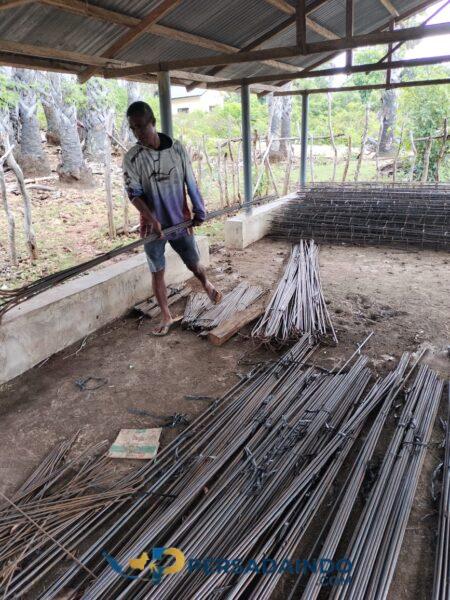 Dalam kegiatan tersebut, Babinsa memantau langsung aktivitas para tukang yang sedang melanjutkan pekerjaan melipat besi untuk pembuatan behel sebagai bagian dari tahapan konstruksi bangunan KDKMP. Pemantauan ini dilakukan untuk memastikan pekerjaan berjalan sesuai rencana serta tetap memperhatikan faktor keamanan dan keselamatan kerja di lapangan.