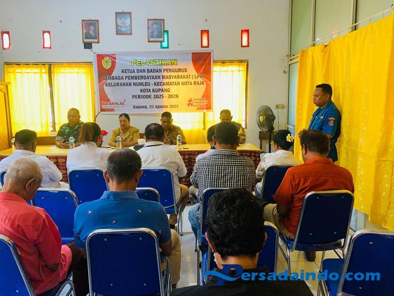 NTT-KUPANG, – Babinsa Nunleu Koramil 1604-01/Kupang, Peltu Surahman, menghadiri acara pelantikan Ketua dan badan pengurus Lembaga Pemberdayaan Masyarakat (LPM) Kelurahan Nunleu periode 2025–2028. Kegiatan ini berlangsung di Aula Kantor Lurah Nunleu, Kecamatan Kota Raja, Kota Kupang, dengan penuh khidmat dan kekeluargaan. Senin (25/08/2025).