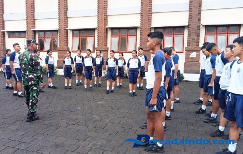 • Pelatihan Baris Berbaris Babinsa Latih Kembangkan Karakter dan Disiplin Siswa SMPN 15 Denpasar